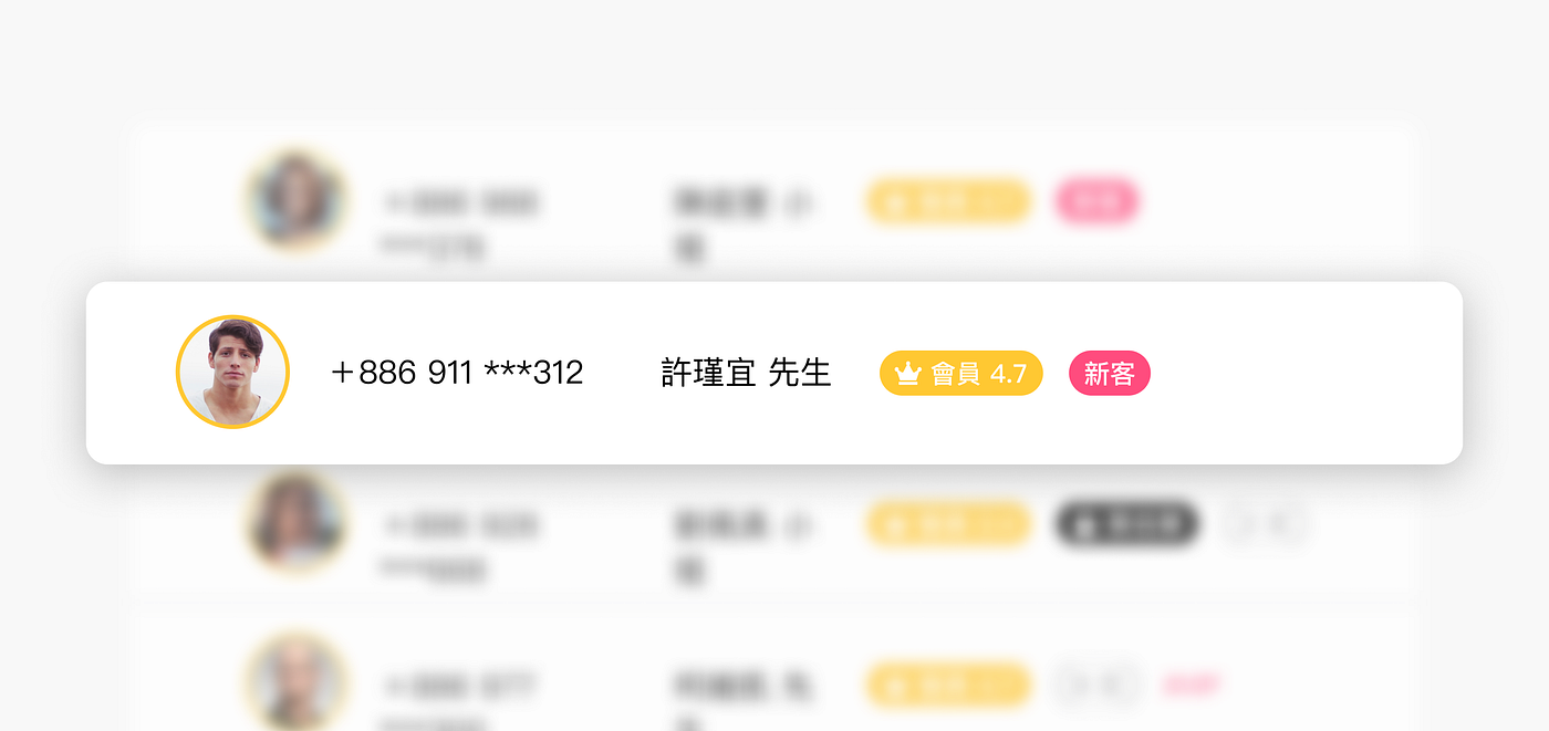 凡是擁有夯客的商家們,都會擁有夯客為你整理的「會員護照」,系統將使用顧客的電話號碼歸檔,讓你能夠一目了然所有顧客的基礎資訊、隨時掌握最新加入的顧客。